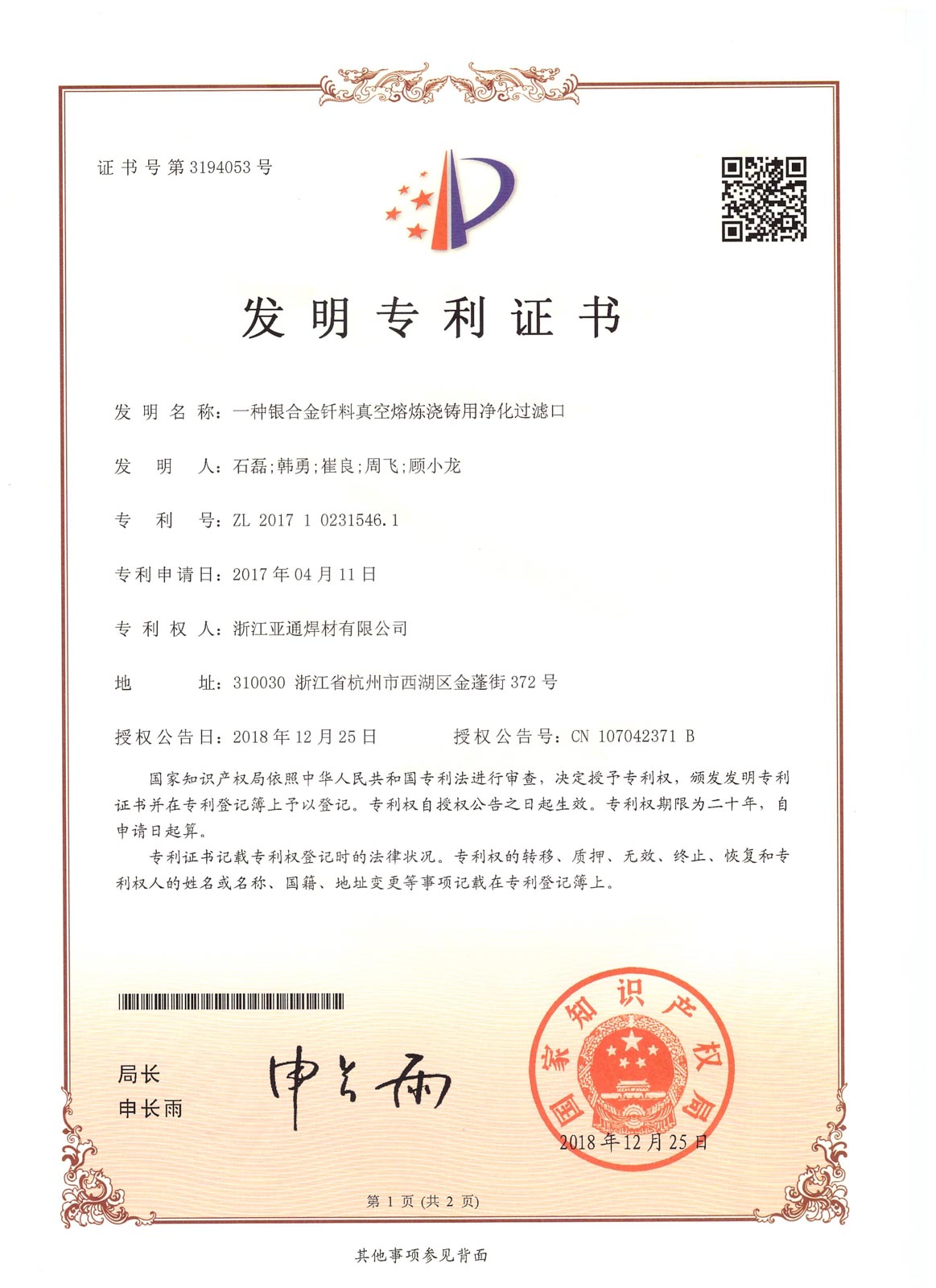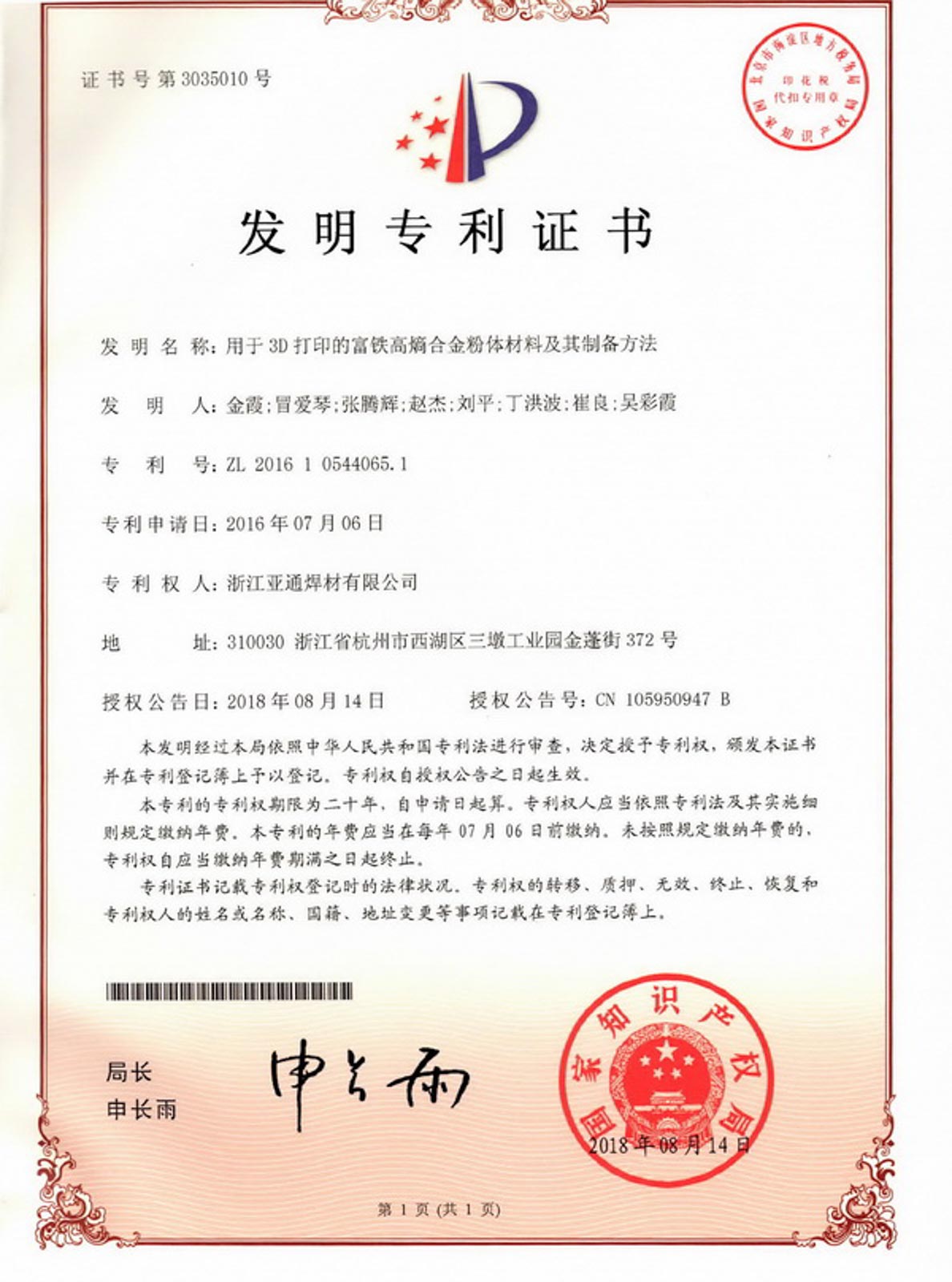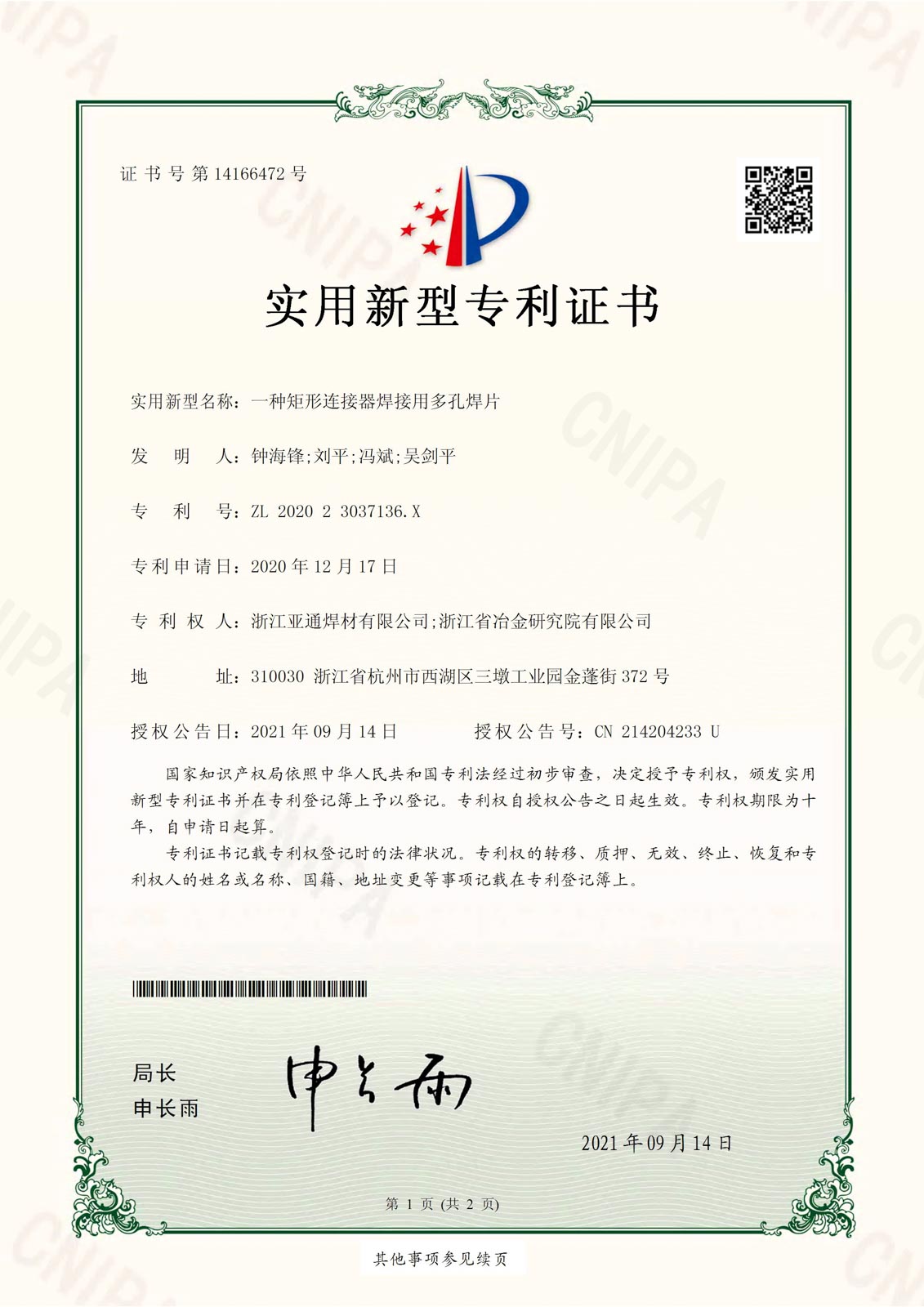 2016年4月,經省科技廳、省發改委、省經信委、省財政廳批準,浙江亞通新材料股份有限公司作為先進釬焊材料產業技術創新的綜合試點單位,組建浙江省亞通先進釬焊材料重點企業研究院,2020年12月建成并對外開放。