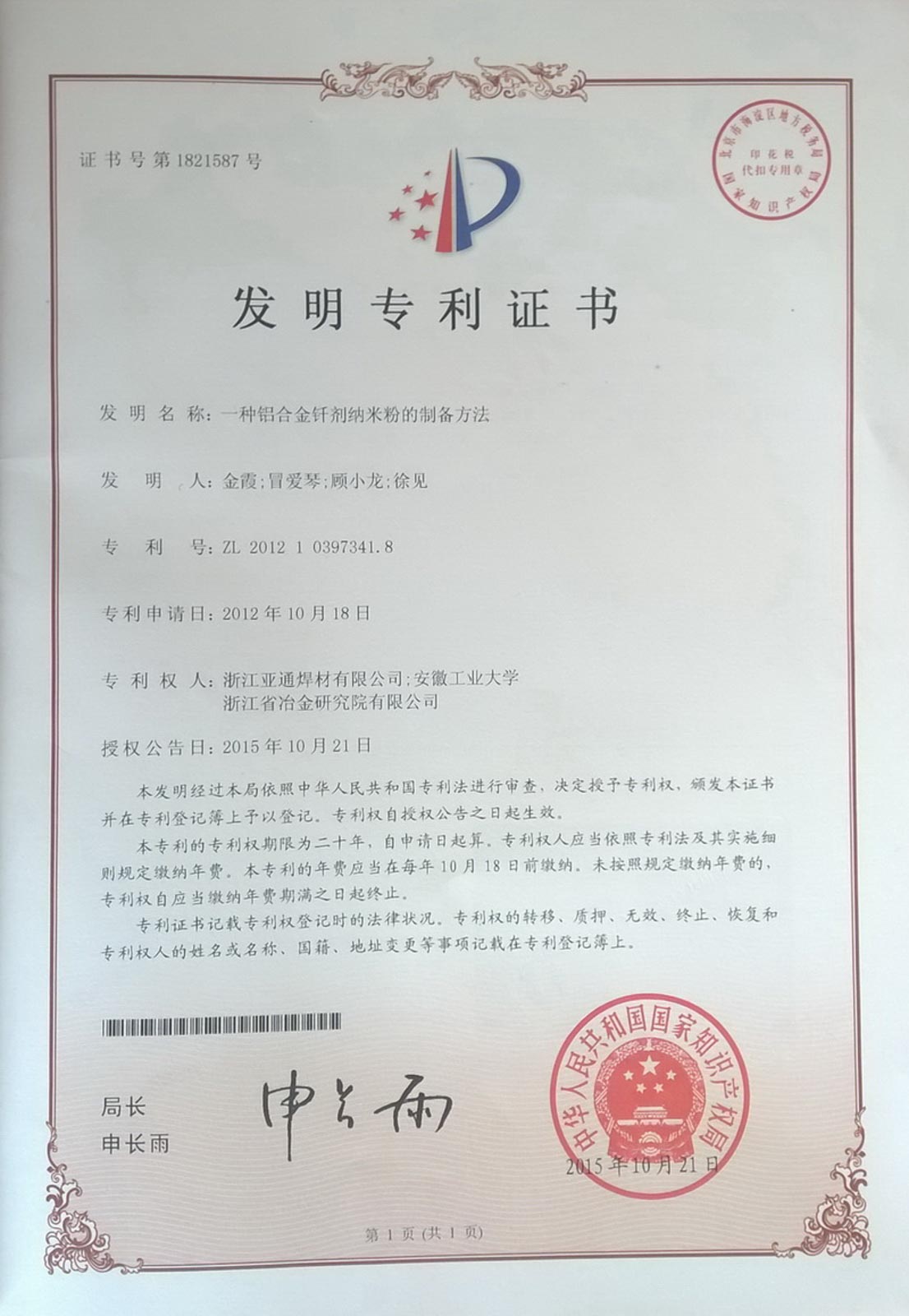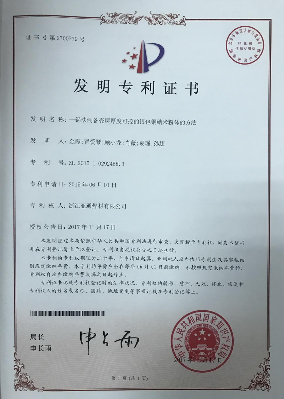 2015年6月,浙江亞通新材料股份有限公司企業技術中心由省經信委、省財政廳、省國稅局、省地稅局和杭州海關等5部門聯合認定為省級企業技術中心。